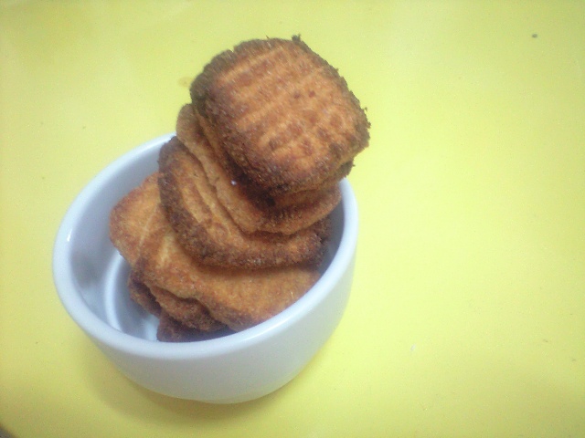 腹ごなしにバームクーヘンか、おかきを食べる